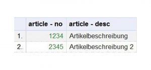 Wenn Sie das Element „article“ auswählen, wird für jeden Artikel eine Zeile in der Tabelle erstellt und alle darunterliegenden Inhalte werden als Spalten abgelegt: