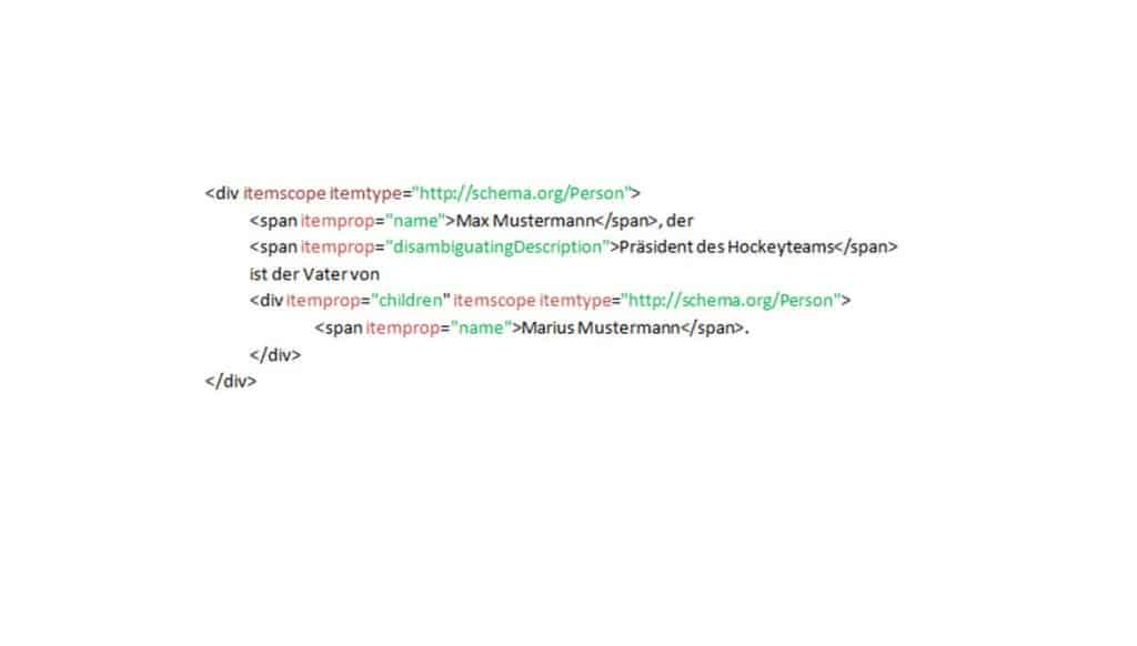 Hintergrund ist, dass die meisten Webinhalte unstrukturiert vorliegen, in Form nicht verbundener Webseiten, die Informationen in Text- oder Bildform enthalten. Während Menschen beim Lesen meist intuitiv erfassen, welche Art Information sie vor sich haben (z. B. Vorname, Produktname, Jahreszahl, Telefonnummer), erkennen Suchmaschinen die Informationsart nicht automatisch. Schema.org ist eine Auszeichnungssprache, die dazu dient, Webinhalte zu strukturieren und miteinander in Beziehung zu setzen (s. Abb. 1).