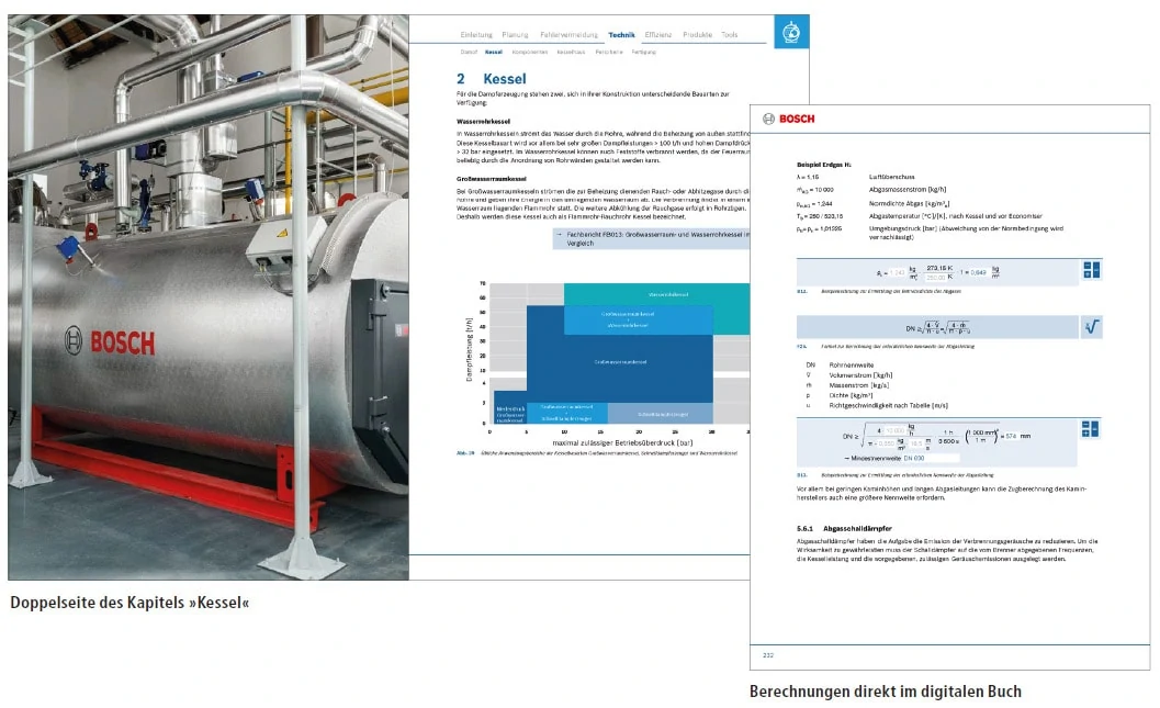 Außerdem können Berechnungen direkt im Buch vorgenommen werden. »Damit dient das Handbuch Anlagenbauern, Installationsbetreibern und Planungsbüros als Checkliste und als professionelles Werkzeug bei der Planung komplexer Dampfkesselsysteme«, erklärt Daniel Gosse. »Sie sparen damit nicht nur Zeit, sondern mindern auch Risiken wie Rechen- oder Syntaxfehler, die beispielsweise beim Arbeiten mit den Formeln entstehen können.« Für diese Zielgruppen hält die Planungsunterlage zudem Hinweise für einen sicheren, effizienten und verschleißarmen Betrieb von Dampfkesselanlagen bereit.