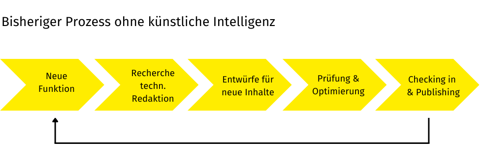 Die Dokumentation neuer Softwarefunktionen fand bisher klassisch ohne KI statt. Ausgangspunkt war die Entwicklungsabteilung des Kunden, die für neue Funktionen jeweils ein Ticket in der Projektmanagement-Software Jira erstellt und diese dort beschreibt. Die technische Redaktion bei TANNER recherchierte dann auf verschiedenen Content-Plattformen die relevanten Informationen dazu. Schließlich erstellte die Redaktion erste Inhalte (Bild, Text, Links und Code), die geprüft, verbessert und final in der Softwaredokumentation veröffentlicht wurden.